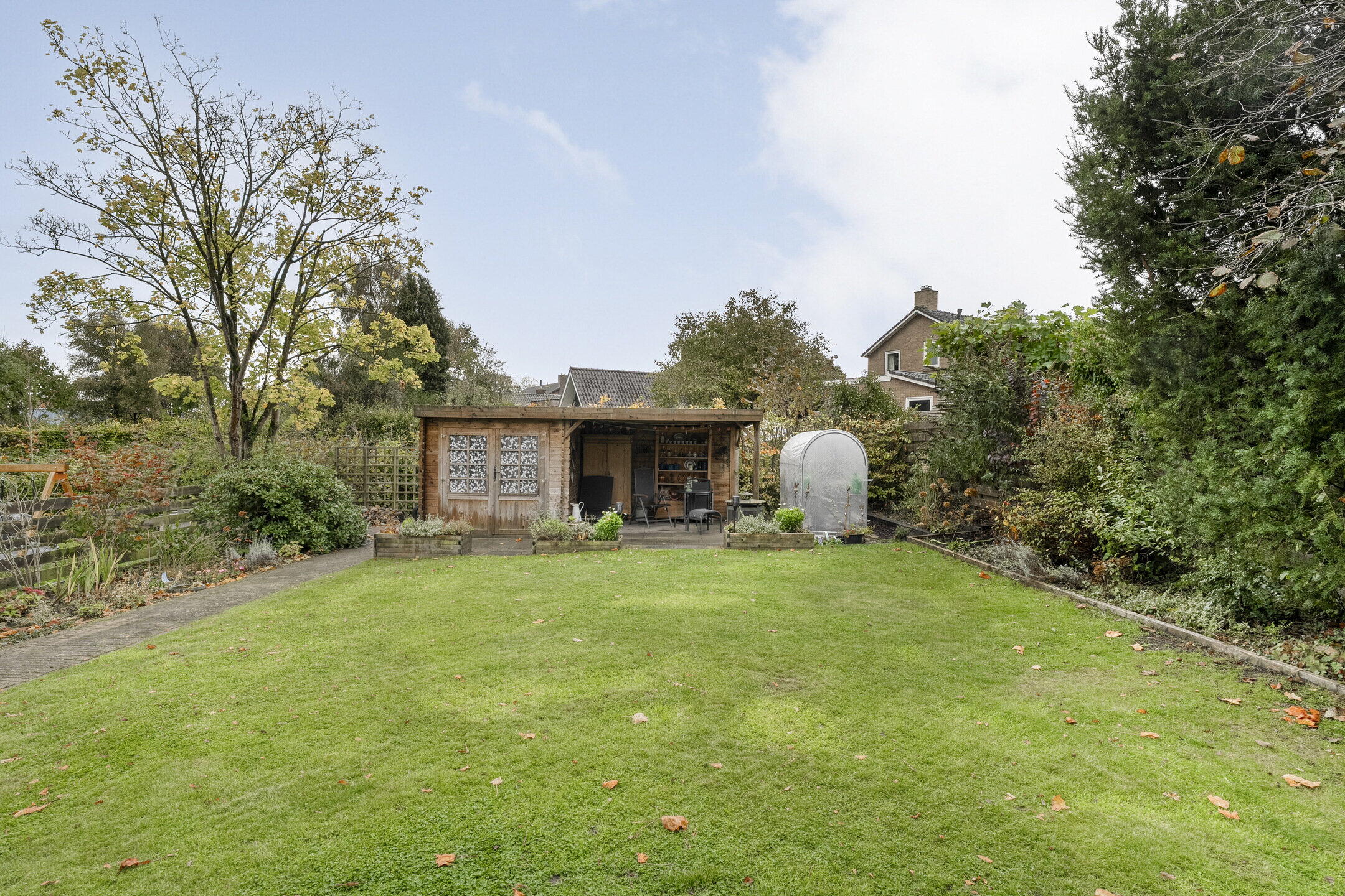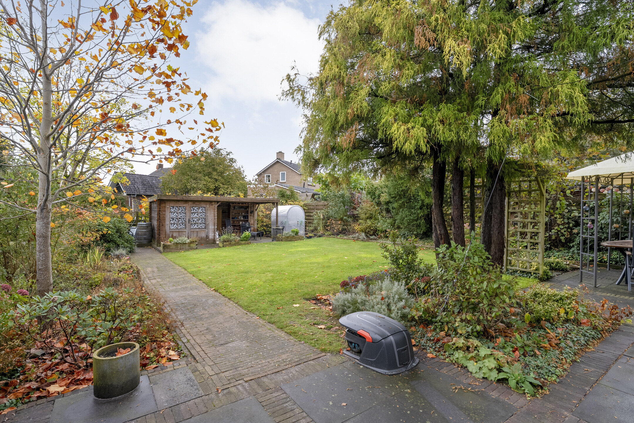 This detached house is well maintained, recently painted (2024/2025), and centrally heated. The property is equipped with a Domotica system that can control each radiator separately and remotely. Most of the windows are double glazed, and the walls and floors have been reinsulated. The house has an energy label C. Behind the house is a deep, free-standing backyard with a garden shed and practical canopy. The garden is accessible along the side of the house. Next to the house is a stone garage with carport and its own driveway.