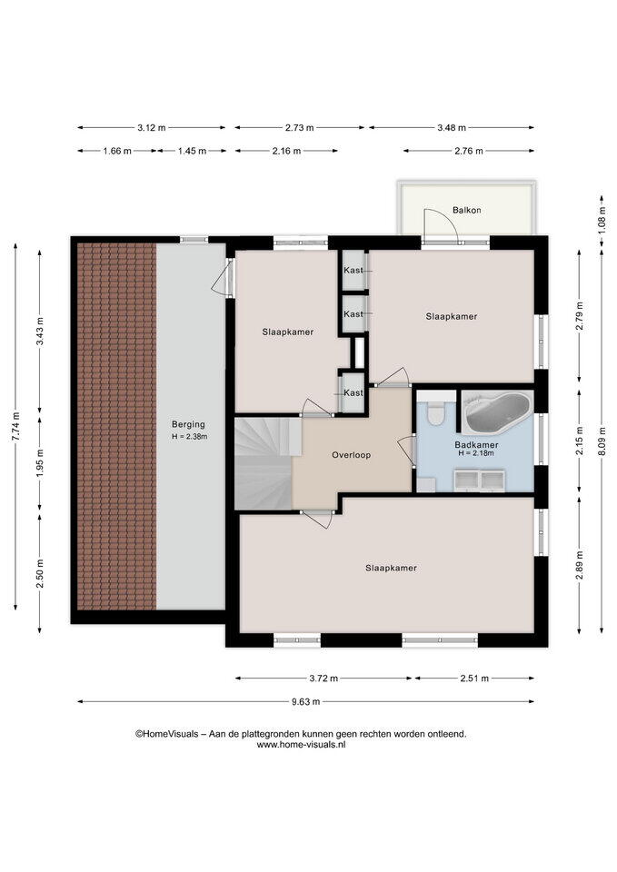 2nd floor: Hallway with closet, 4th bedroom and spacious hobby room with space for the boiler.